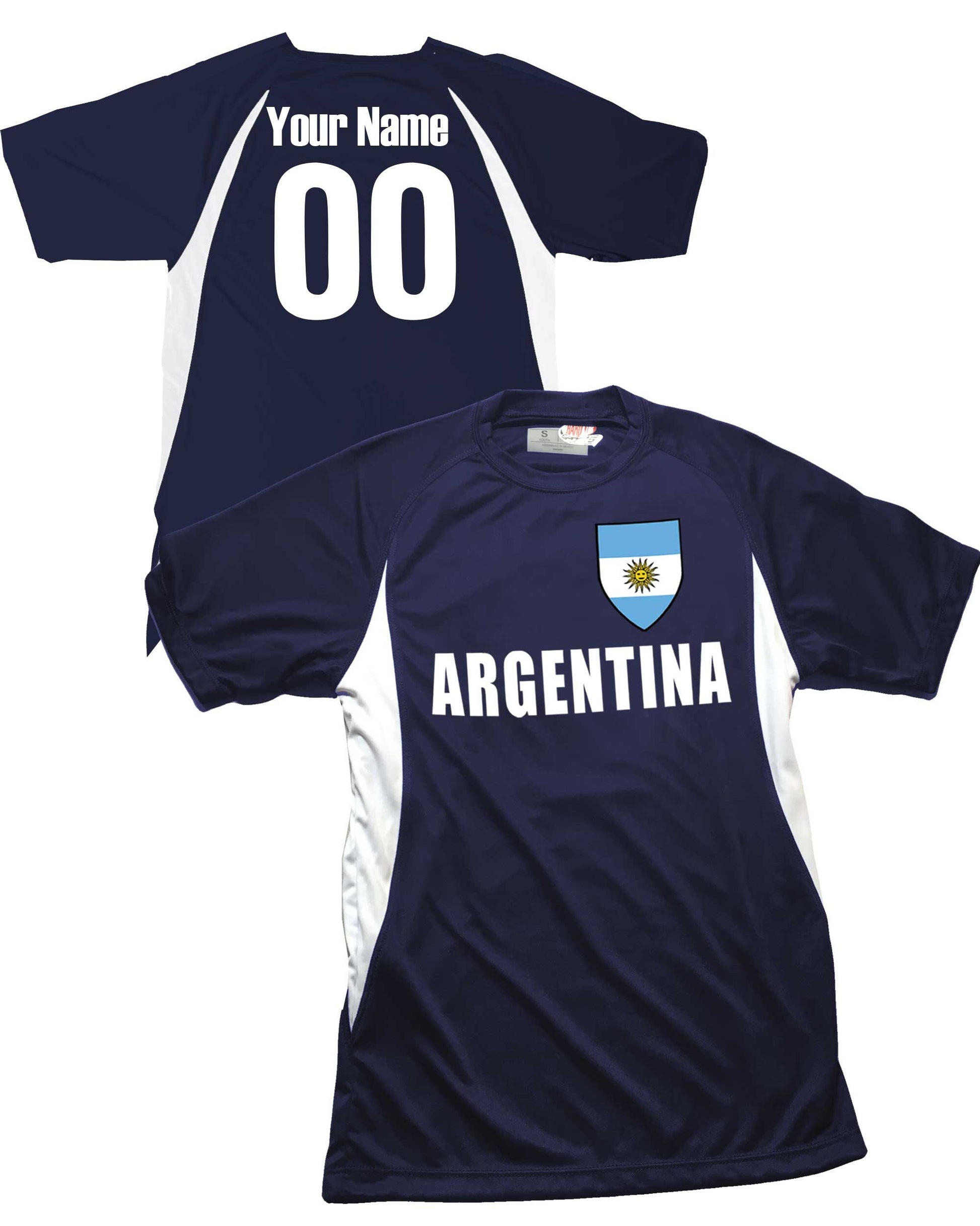 Argentina Soccer Jersey, Argentinian Flag Shield Design, Customized with Your Names and Numbers in Your choice of Popular Colors