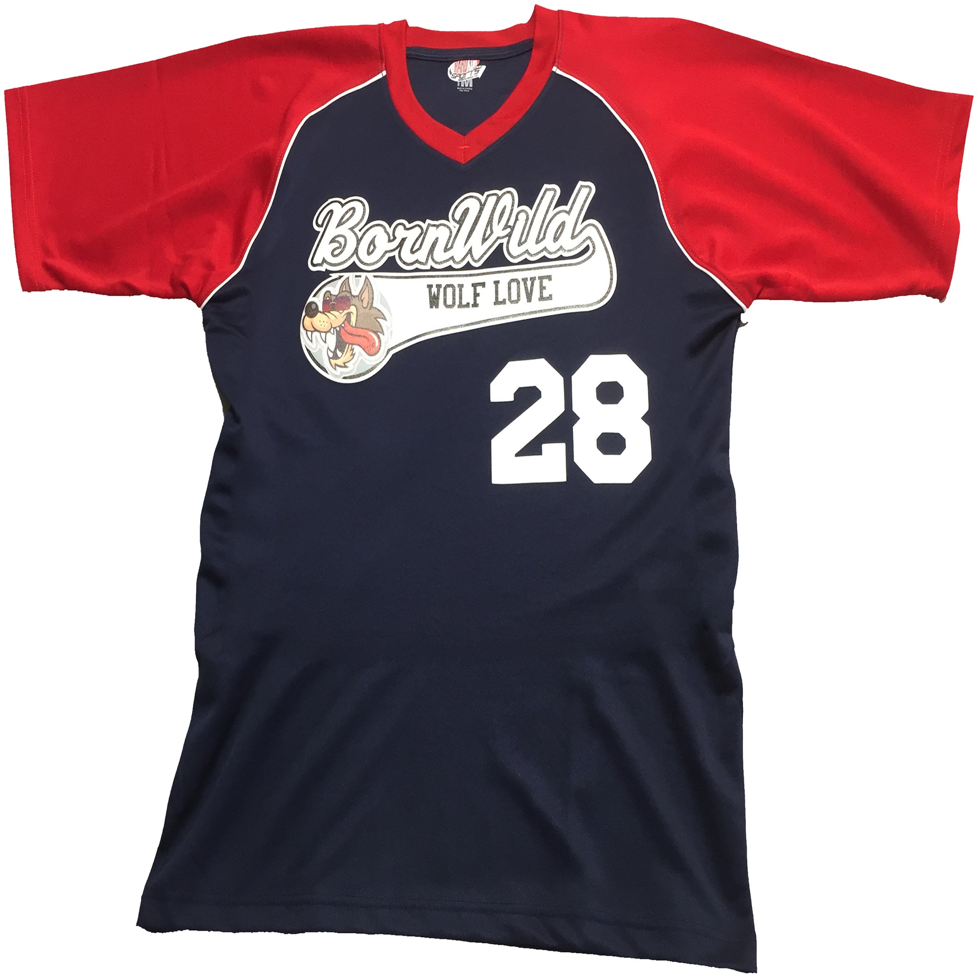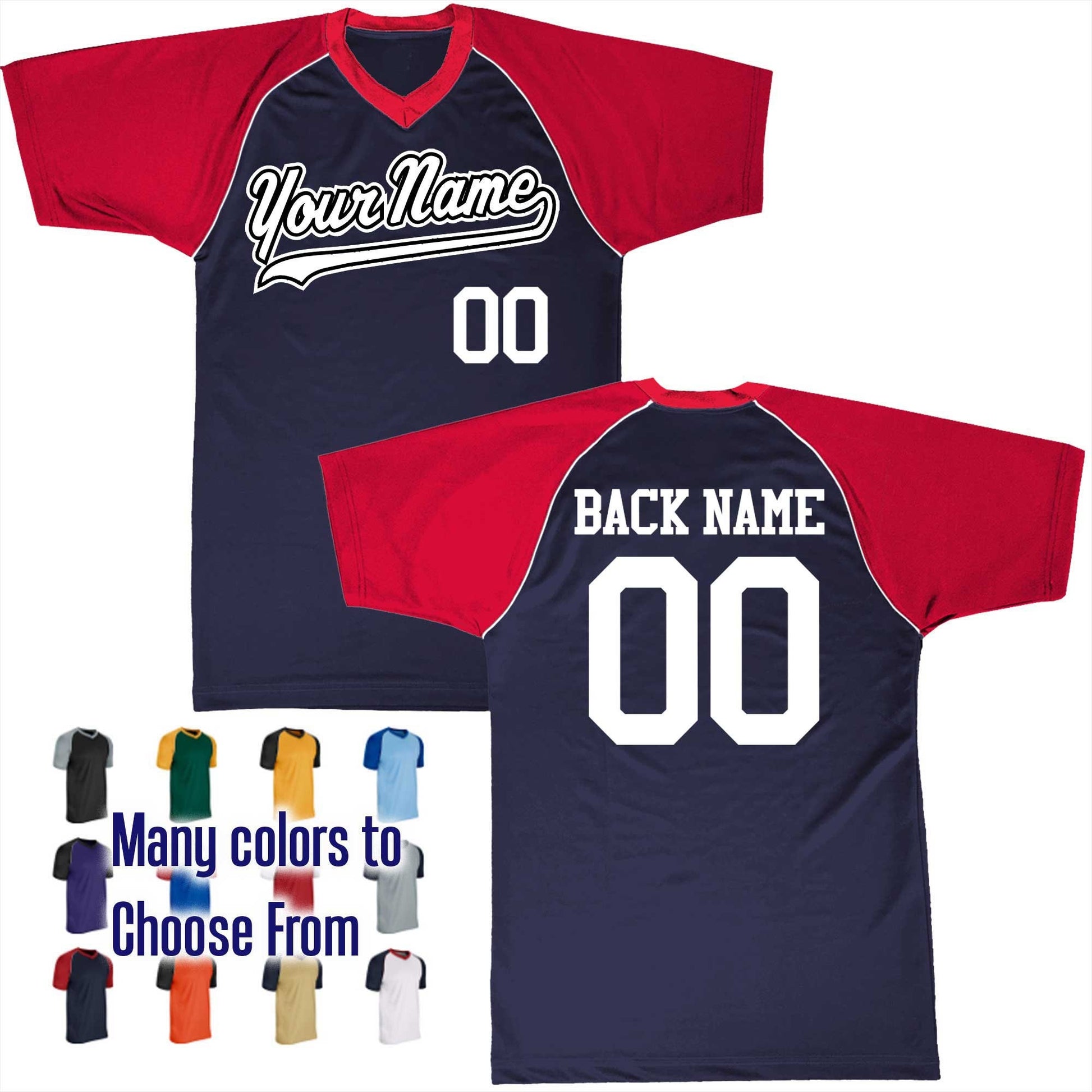 Baseball Script Thin Tail Baseball Logo V-Neck Custom Baseball Jersey Customized, Player Names and Numbers, Economical Printed in USA