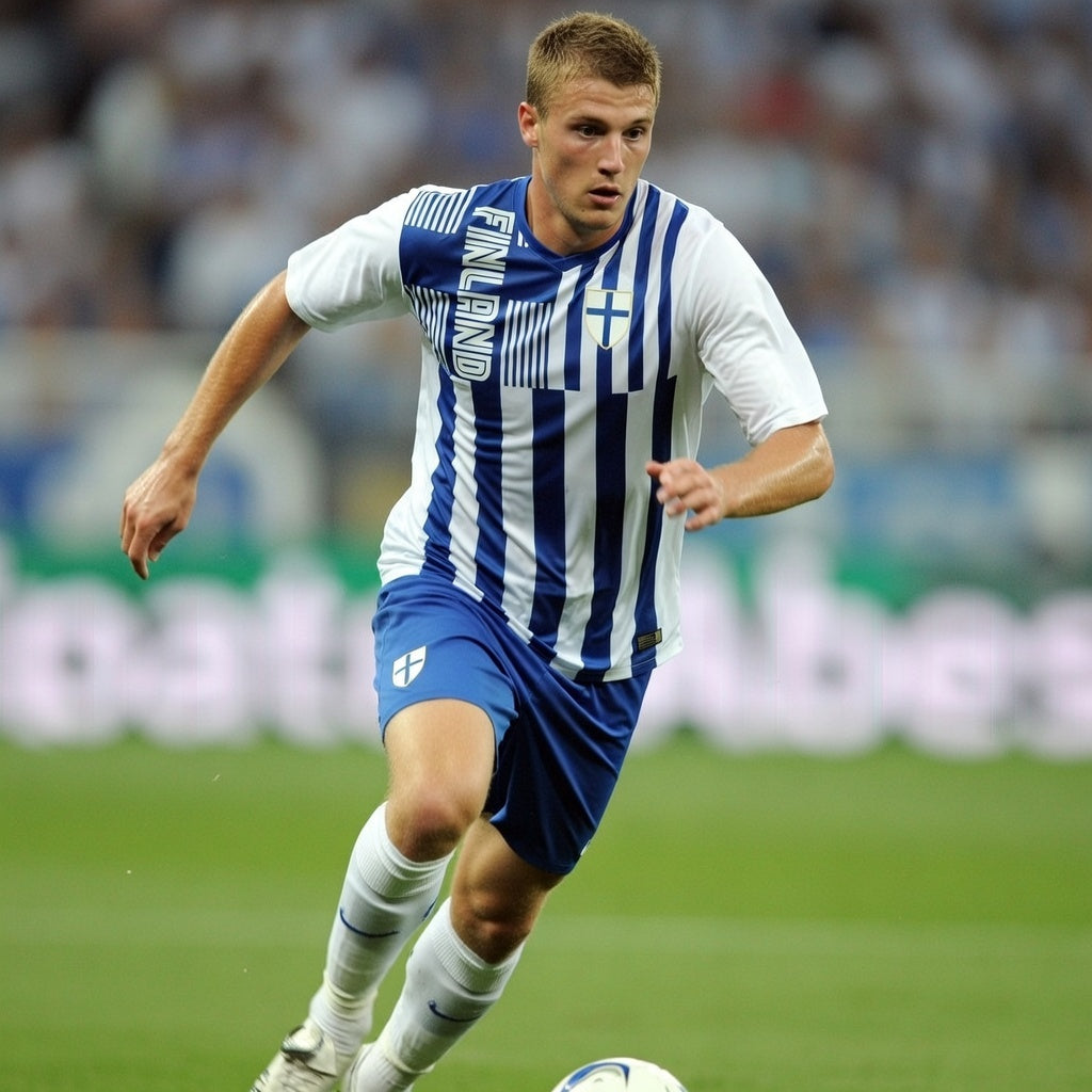 Display your Finnish heritage with this custom soccer jersey, featuring all-over sublimated printing that captures vibrant national pride. Your personalized name and number are expertly printed on the back, creating a one-of-a-kind piece. The design is printed on flat material then precisely cut and sewn together for a professional finish. Perfect as a gift for passionate soccer fans or anyone celebrating their Finnish roots, this jersey combines authentic team spirit with individual customization.