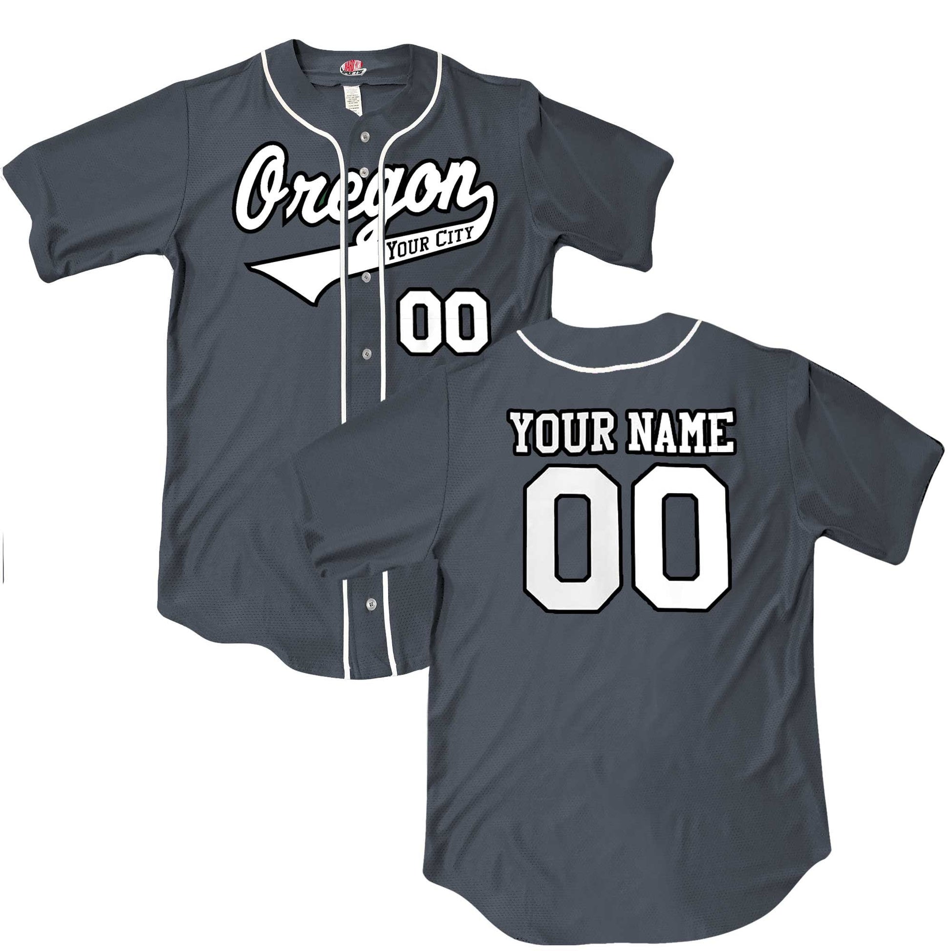 Custom Oregon Baseball Jersey, Dark Green or Graphite Grey, Personalized with Your City, Your Name and Numbers, Choice of Print Options