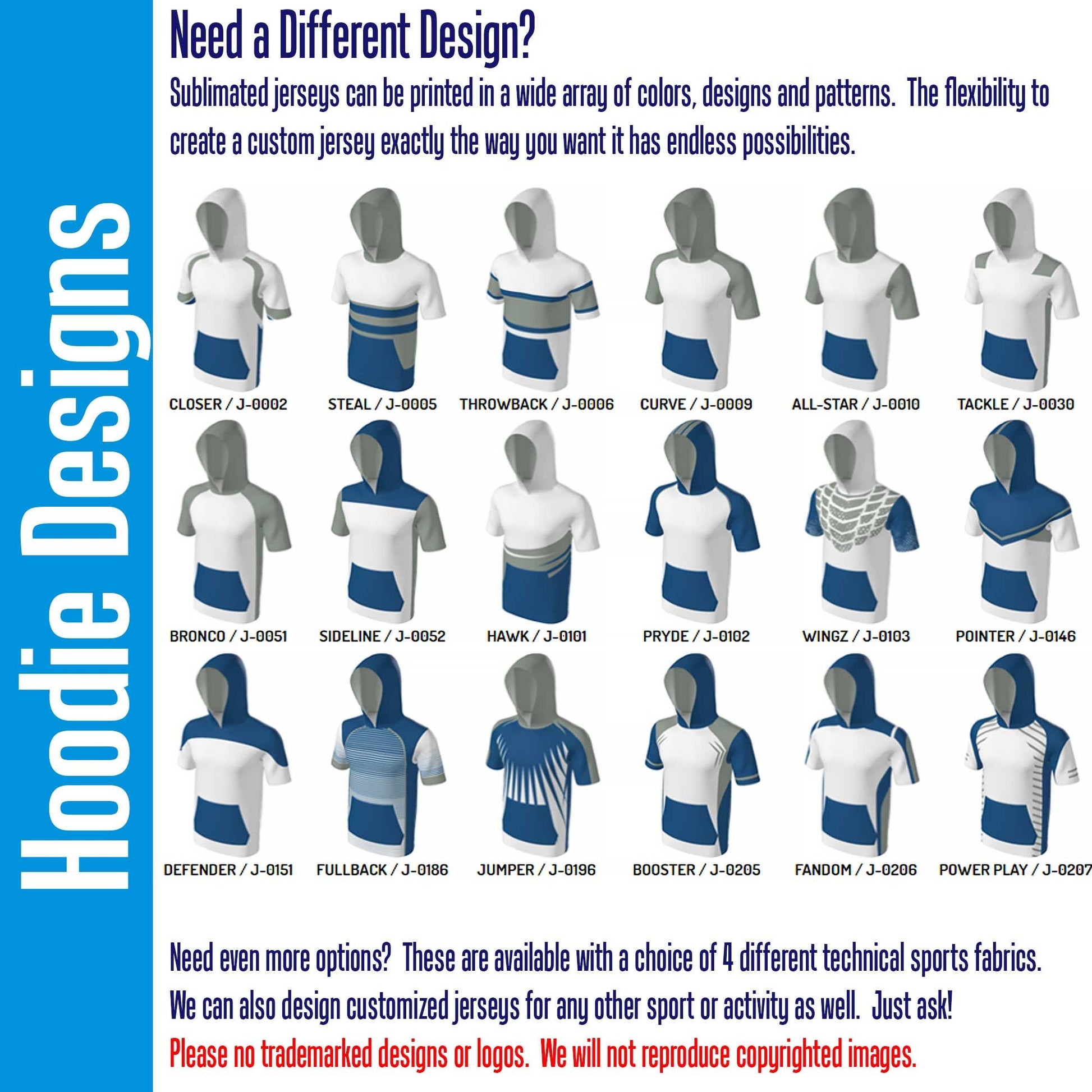 Fully Customized lightweight hooded t-shirt with pockets. Printed with your names, numbers and more.