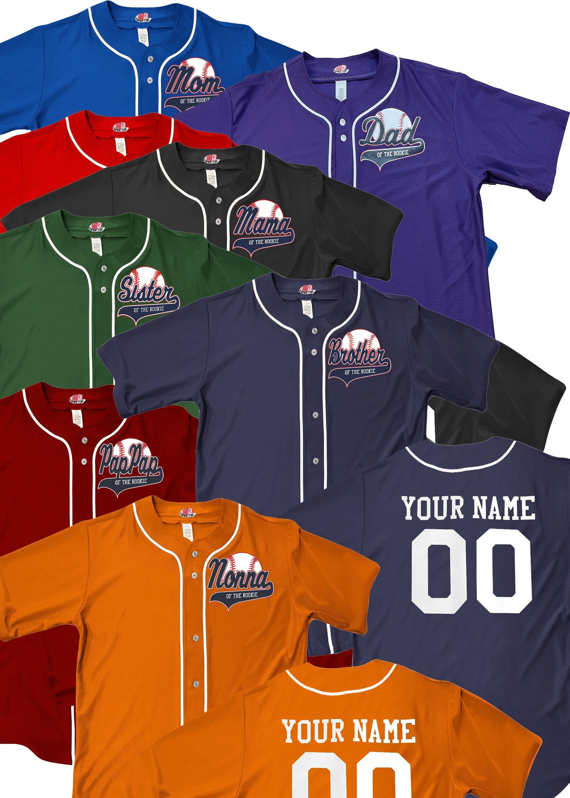 Dad of the Rookie, 6 Button Baseball Jersey, Authentic materials, Any Family Member, Dad, Sister, Brother, Mama, Your Name Number on back