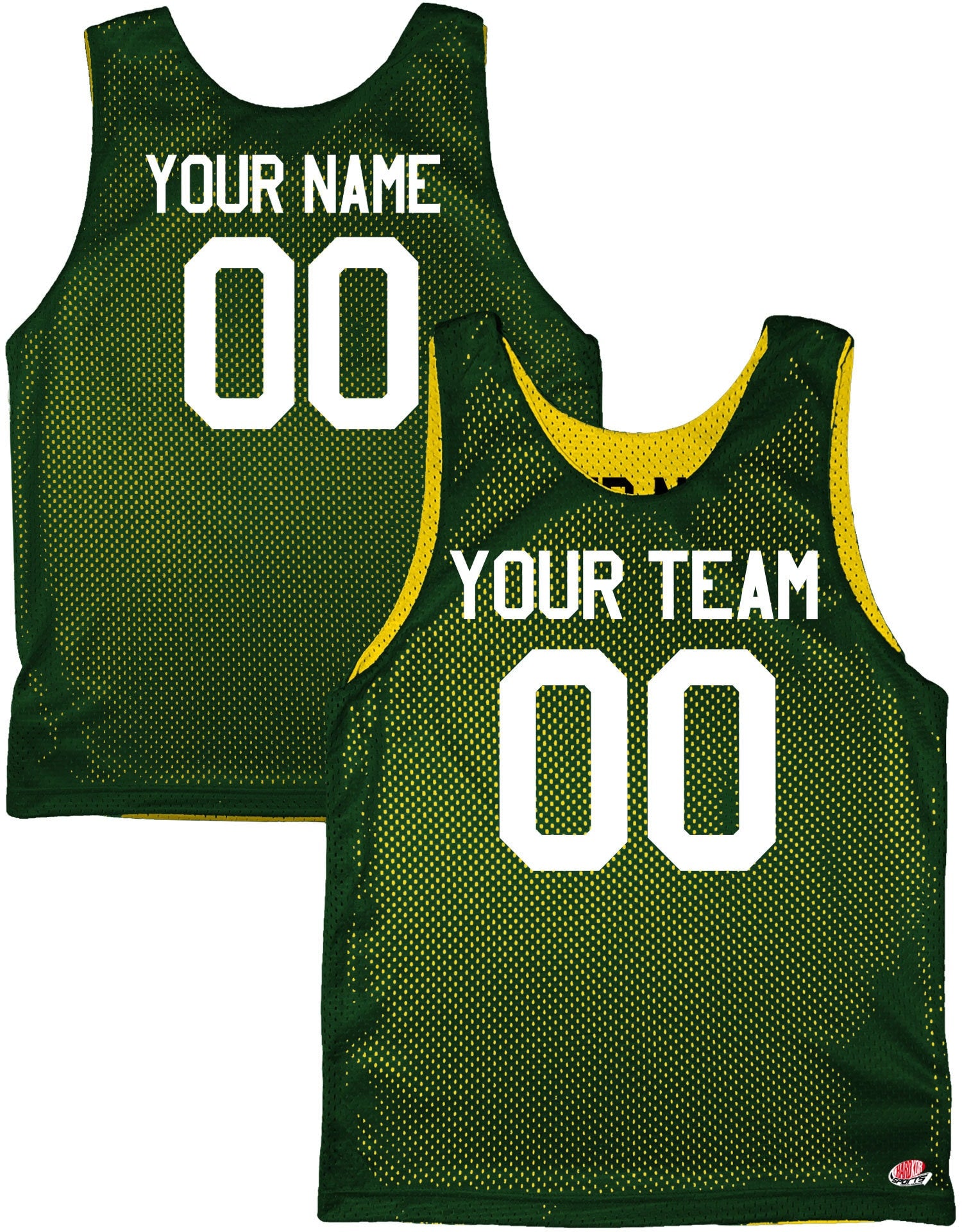 Be the envy of the court with our Dark Forest Green, Vegas Gold, Gold, Black and White custom reversible basketball jersey. Made with high-quality tricot mesh, this jersey is perfect for any team, player, and numbers. Show off your passion for the game and stand out on the court with our vibrant colors and sleek design. Don't settle for ordinary jerseys, choose our custom reversible option and take your game to the next level!