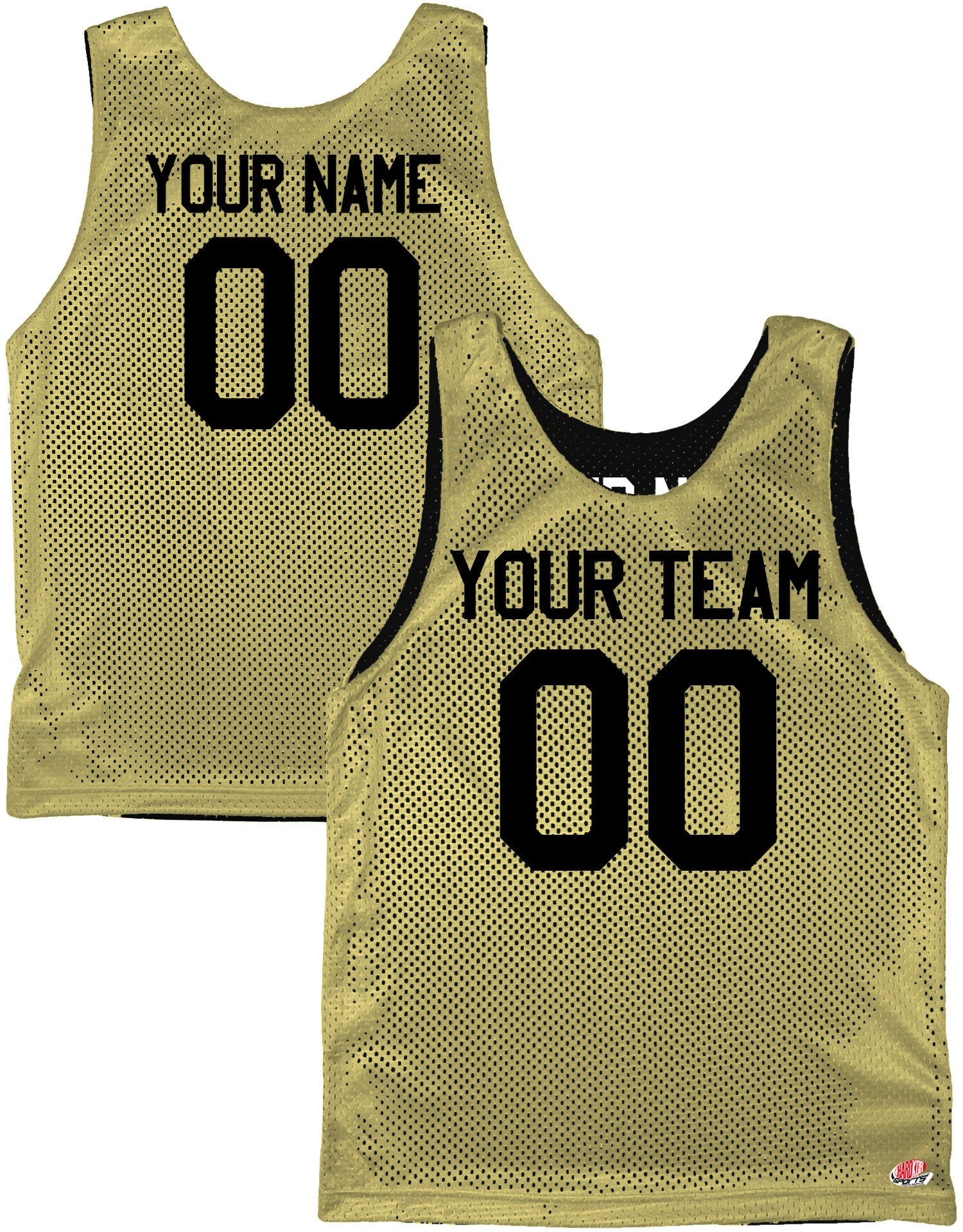 Dark Forest Green, Vegas Gold, Gold, Black and White | Custom Reversible Basketball Jersey | Tricot Mesh. Team, Player Name, Numbers
