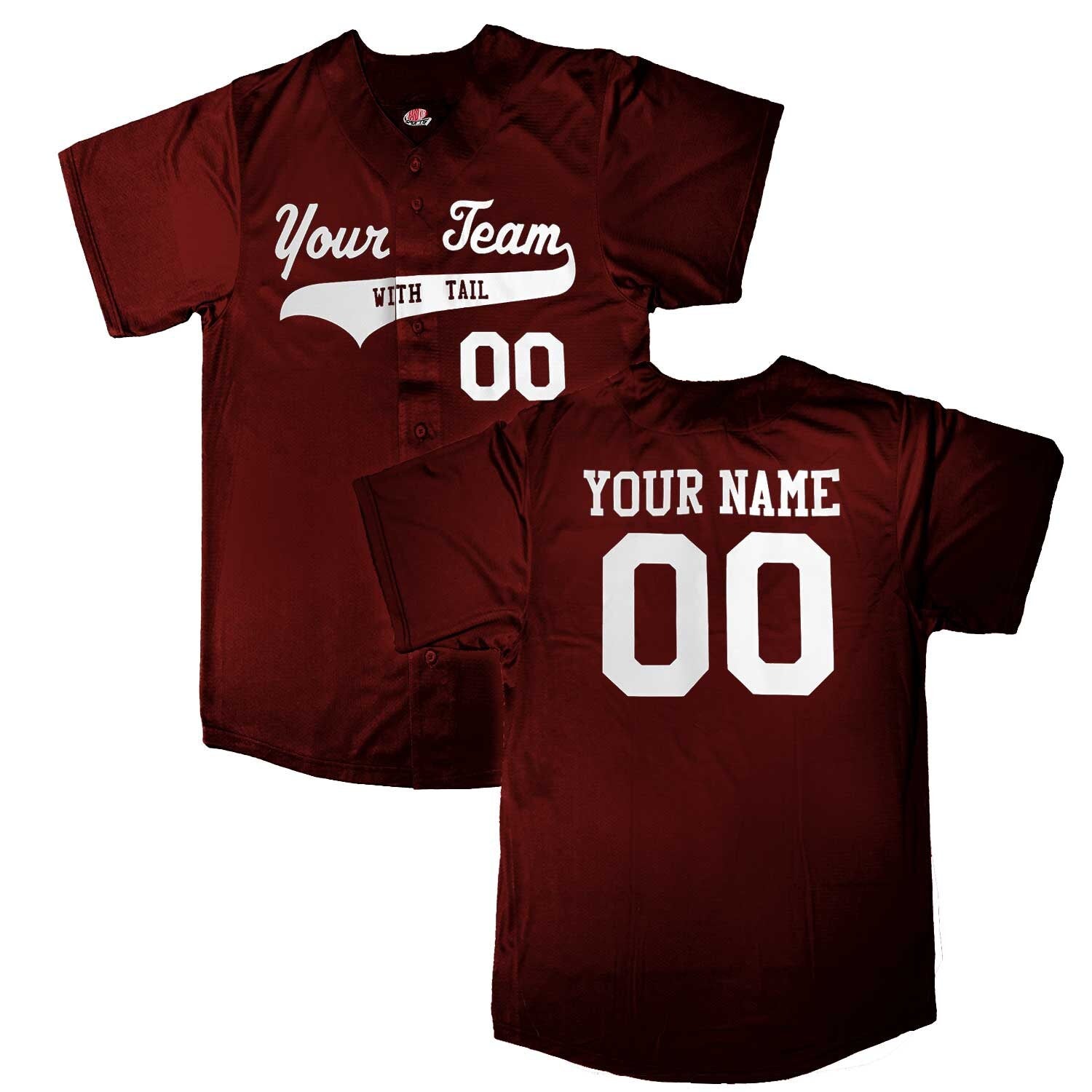 CUSTOMIZATION: We will print your team name and blend it with the tail, then knock out any text you want in the tail along with the player name and numbers printed in your choice of colors and styles as shown on the product images or above.