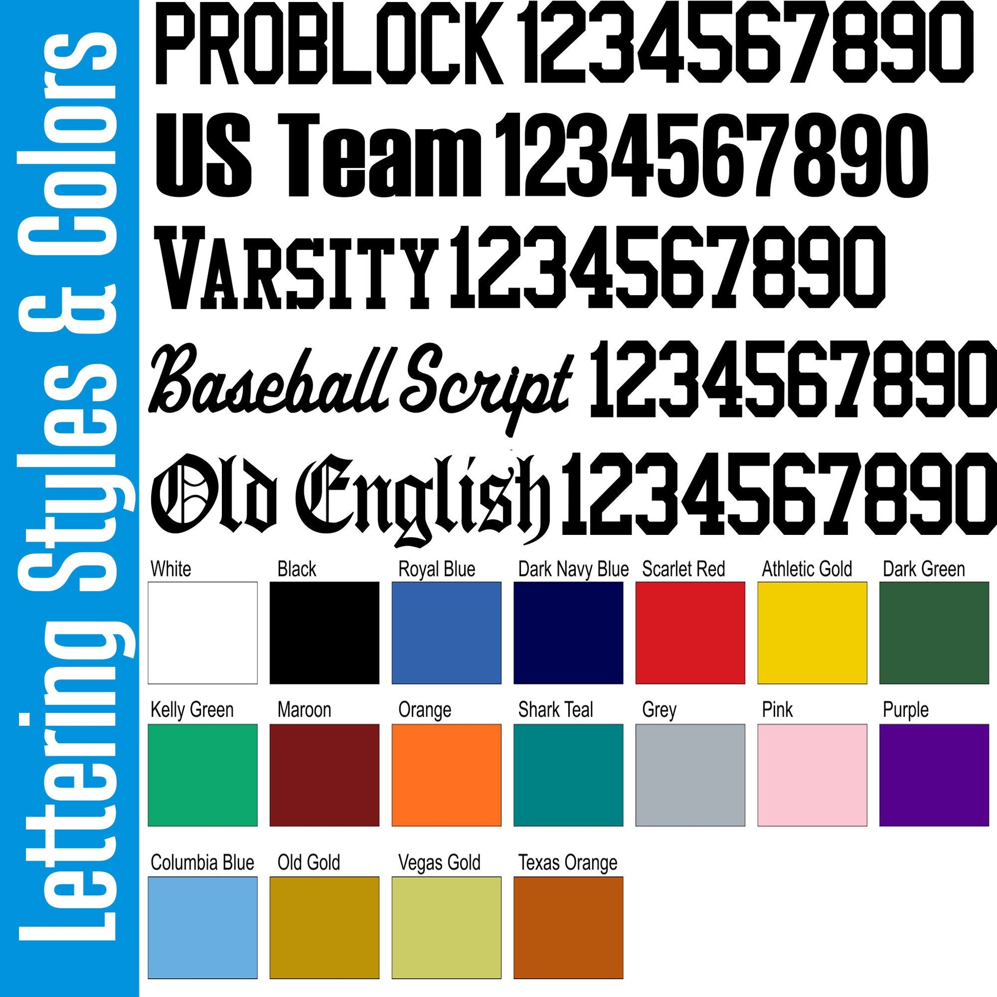 Choose from 18 Lettering Colors. If you want a lettering color other than the default black and white shown please let us know. Lettering colors are white, black, royal blue , navy blue, scarlet red, athletic gold, dark green, kelly green, shark teal, columbia blue, orange, maroon, purple, pink, grey, old Missouri gold, Vegas Gold and Texas orange.