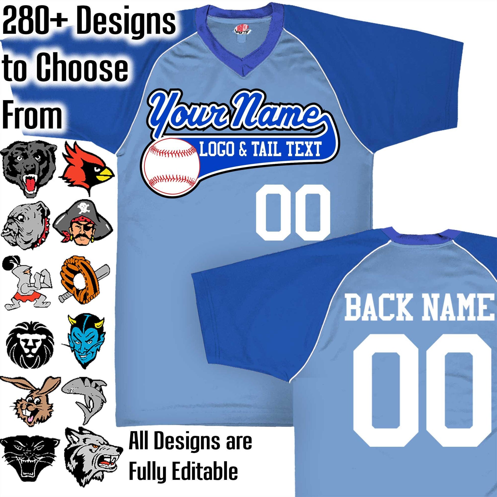 Light Blue, Royal Blue and White Custom Baseball Jersey with Your Team, Player Name and Numbers Custom Baseball Logo